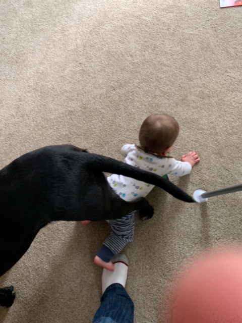 Today you fell down a two stairs in the house. I was upstairs at the time, but I heard the bump bump sound. Oh you scared me tiny human. I wait for you at the top of the stairs, but you were distracted while carrying a water jug thing and so you almost fell more, but dad caught you. So that was good. Sometimes I think you try to move your body faster than you can move and then you flop flop. I used to do that when I first started climbing the stairs. And to be honest, the stairs scared me, so there’s that fact too. You’re a brave baby. I love you, and I’m glad you had a small bump and not a larger bump.