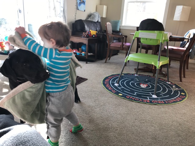 Today we took a walk. Which we do every day together, sometimes two or three times a day, but today we were on the look out. Lately you have really gotten into pointing at things, and then grabbing my human leash and trying to walk me. Mama lets you do that for a little bit, but then she takes it back. You know, she’d be lost without me, so it’s important that I guide her.