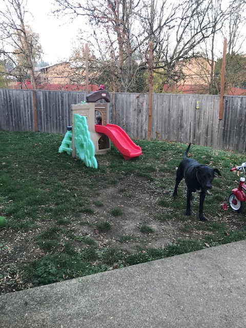 We had a lot of fun running around in the mud and dirt outside. You have these “boots,” which make you walk funny, kind of like when Auntie and Uncle put booties on my paws. You seemed to get used to it and then you were running after me and throwing the ball. That was pretty fun times. My favorite is when you find the missing ball. You’re really good at locating them. You run over, point, and shout, “BALL!” I am not interested in getting my sniffer covered in cobwebs, so I leave the retrieving part up to momma or dada, until you throw it for me into a spot I am comfortable getting it from. You laughed really hard when I ran through the vegetable box and momma said, “NO KIMMY!” Hehehe, that was a great time baby.