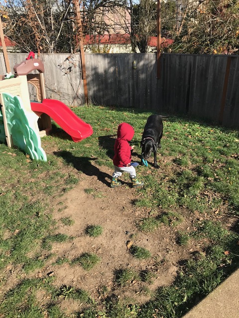 So I did some yoga after momma. I showed her how to properly do the downward dog. She tries, but she’s not a doggy like me and like you can do. She needs to work on her leg angle. It helps if you do the doward dog when you’re getting off the couch-y bed. That works really well. I also like it when I do the doggy yoga and you walk underneath me. That’s fun. Well, it’s fun until I bump-bump you with my legs and then you do the cry-cry, so I have to lick your face and ears. That stops the crying really fast. Momma and dada don’t realize that all they need to do is lick your ears. That makes you stop crying and giggle. Humans, they just don’t get it like us dogs do. Love you baby.